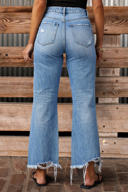 Zephyrine™ - Vintage gewassen gescheurde jeans met wijde pijpen