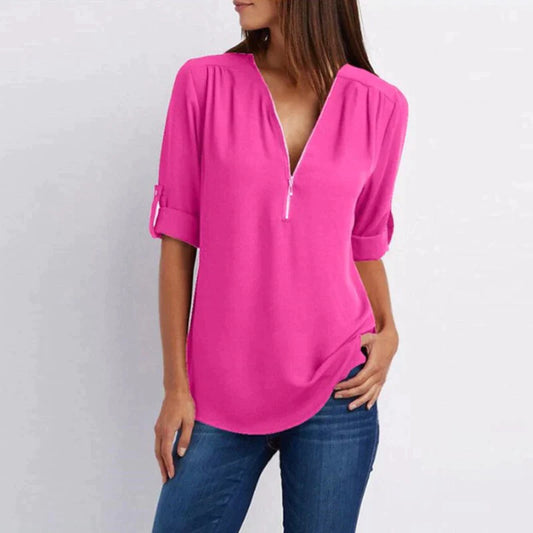 Vera | Klassieke damesblouse met V-hals en rits