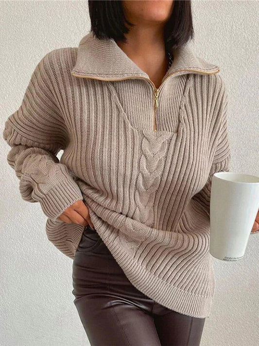 Ginevra™ - Wollen trui met hoge kraag, rits en patroon