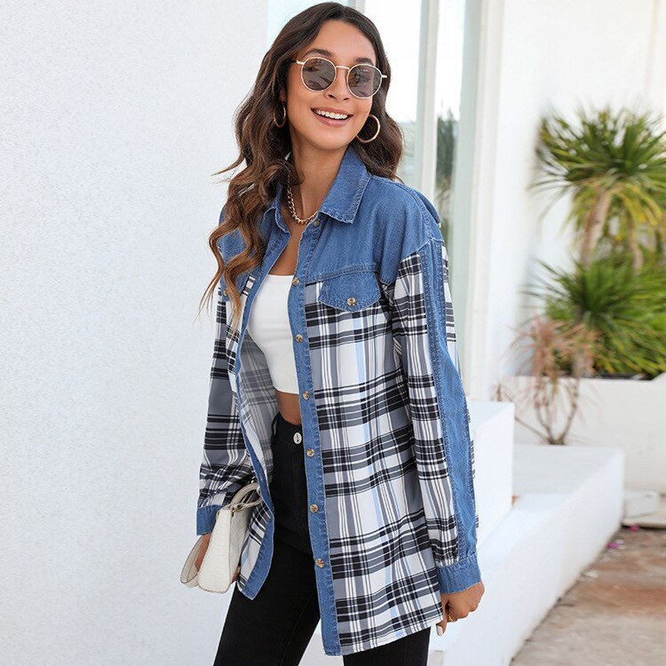 Camilla™ - Blouse van denim met een tijdloze ruit