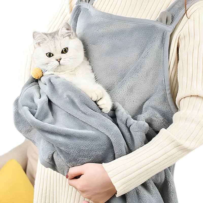 Met de CozyPouch™ Dieren Draag Schort kun je je kat knuffelen zonder je zorgen te maken dat haren aan je kleding blijven plakken, waardoor je de hele dag fris en schoon blijft.