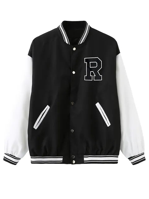 Maak kennis met onze dames outerwear R Letter Print Long Sleeve Cool Jacket - het ultieme streetwear chic! Dit bomberjack is ontworpen voor de gewaagde en modebewuste vrouw en is een must-have voor je herfst- en wintergarderobe. Bedrukt met de letter 'R' is het de perfecte mix van stijlvol en cool.
