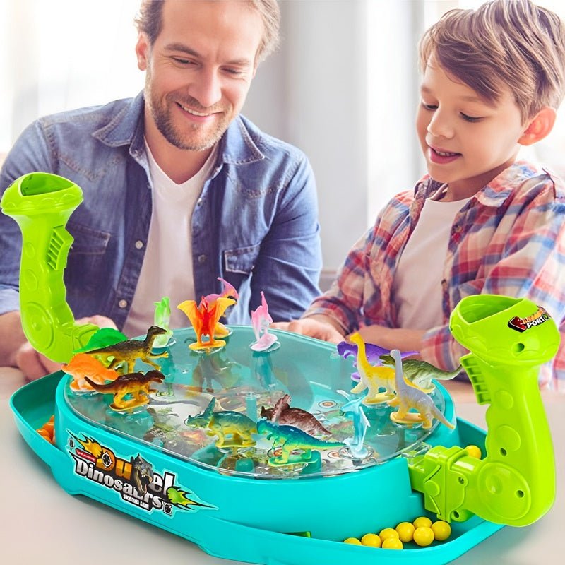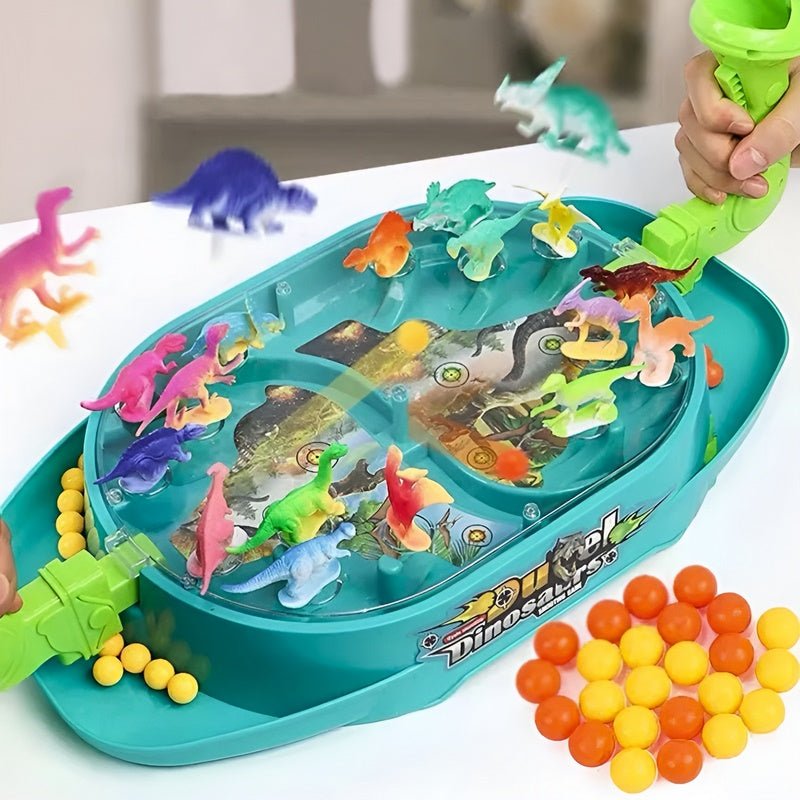 Zeg vaarwel tegen het gedoe van voortdurend kogels herladen. Het schot stoot de dinosaurus van het bord en de kogel wordt automatisch gerecycled in de sleuf voor hergebruik.