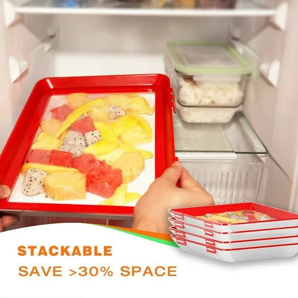 ✔ Ruimtebesparend: Je kunt meerdere Fresh Lock™-dienbladen stapelen, waardoor je kostbare ruimte in je koelkast of voorraadkast bespaart. Opbergen is nog nooit zo gemakkelijk geweest.