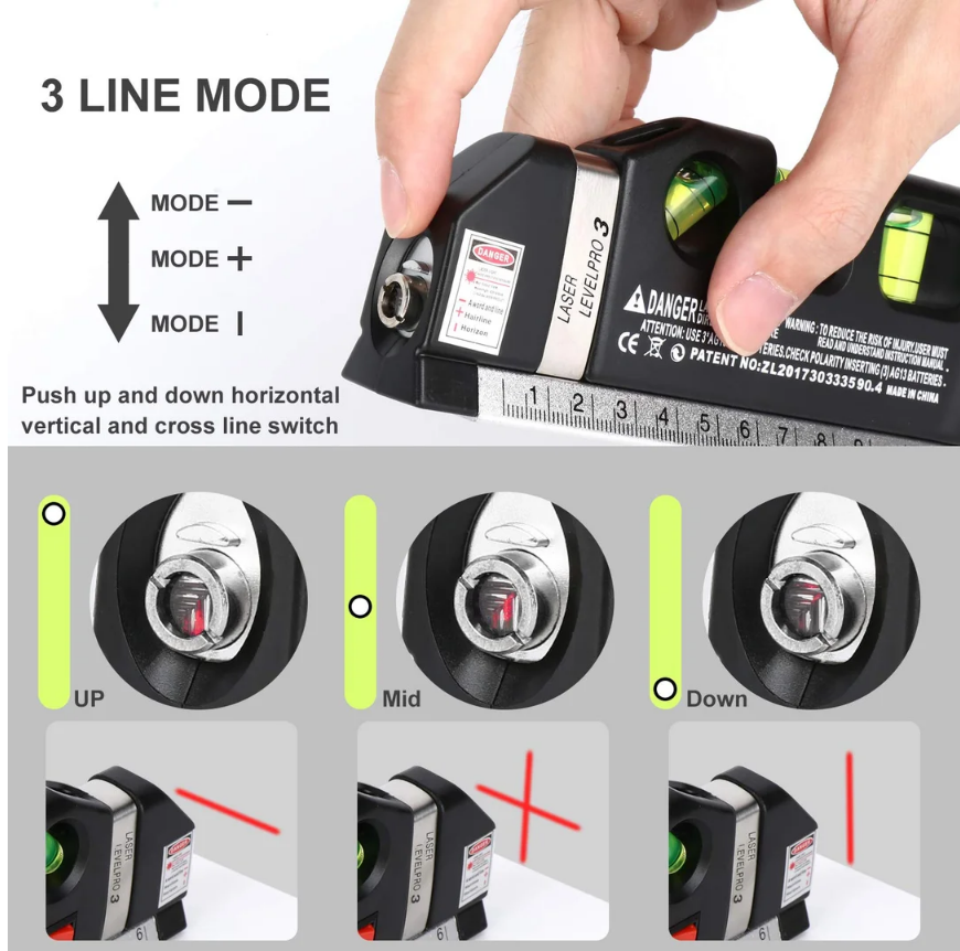 Maak kennis met de ultieme oplossing voor al je meetbehoeften - de Multifunctionele Laserwaterpas. Dit innovatieve gereedschap is een must voor elke doe-het-zelver, of je nu planken, kasten, tegels of fotolijstjes ophangt. Zeg maar dag tegen scheve installaties en onnauwkeurige metingen; onze laserwaterpas zorgt voor precisie en efficiëntie bij elk project. Met de eenvoudige schuifregelaar kun je moeiteloos schakelen tussen de verticale, horizontale en gekruiste laserlijnmodi, waardoor hij geschikt is voor verschillende taken, zoals: B. voor het ophangen van foto's.