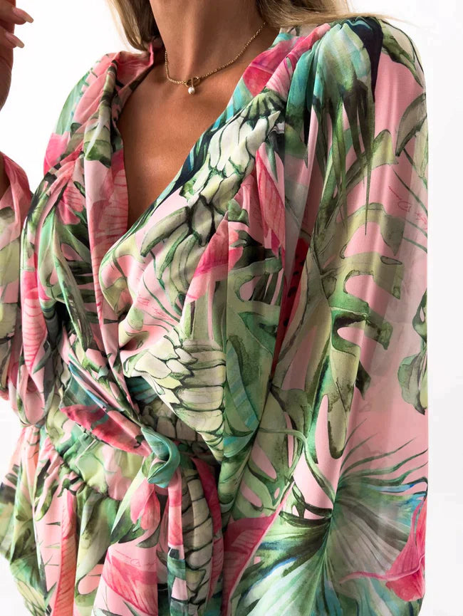 Moeiteloze elegantie: Met het Liv strandpak kun je genieten van de schoonheid van eenvoud en verfijning. De flatterende V-hals voegt een vleugje vrouwelijkheid toe, terwijl de lantaarnmouwen zorgen voor een sierlijk model dat overal hoofden zal doen omdraaien. Of je nu op het strand loopt of danst onder de sterren, deze playsuit zorgt ervoor dat je in het middelpunt van de belangstelling staat en straalt moeiteloze charme en zelfvertrouwen uit.