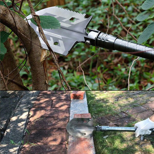 Deze tactische schop is een praktisch werktuig met veel verschillende functies en erg gebruiksvriendelijk. Dankzij dit multifunctionele gereedschap kan je je redden tijdens een survival, op een kampeertocht of gewoon bij tuinwerkzaamheden. De mogelijkheden zijn eindeloos! Bespaar ruimte en tijd door deze professionele multifunctionele schop aan te schaffen.