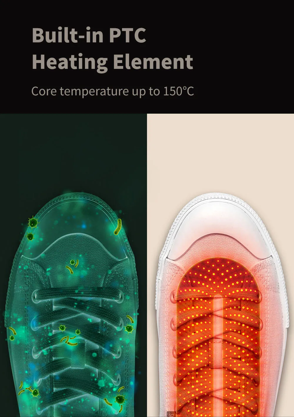 - PTC-warmtegenerator: nauwkeurige temperatuurregeling om de droogtemperatuur altijd bij 55 °C te houden om je geliefde schoenen tegen oververhitting te beschermen en je lievelingslaarzen en -sneakers efficiënt te drogen, zonder schade te veroorzaken. De schoendrogers zijn gemaakt van hoogwaardige hittebestendige materialen.
