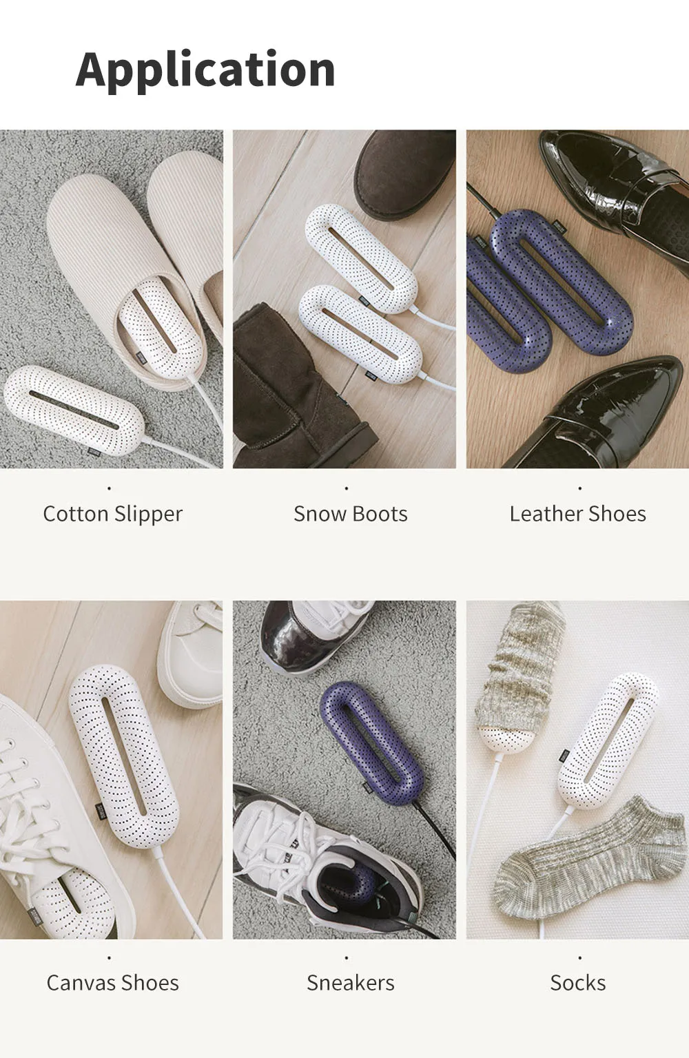 - Functie: drogen, opwarmen, elimineren van geur en desinfecteren van schoenen. Bescherm je schoenen tegen vocht. Verwarmt je laarzen en sokken op koude momenten. Voor het drogen van gymschoenen of sportschoenen van sporters. Geschikt voor alle soorten schoenen en laarzen, katoenen pantoffels, leren schoenen, zeilschoenen, werklaarzen, sneeuwschoenen, sportschoenen, etc.