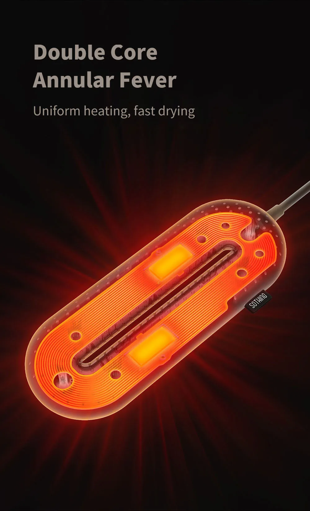 - 360° All Rounded Warmte: 1532 luchtgaten, die een gelijkmatige warmteverdeling garanderen; het straalt warmte gelijkmatig uit, waardoor de vochtverdamping versnelt.