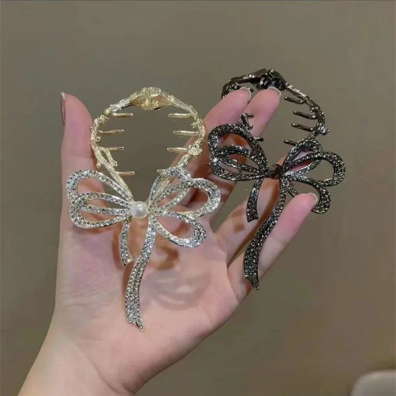 Vergeet de gewone haarspelden die na verloop van tijd dof worden en dik haar niet kunnen houden. Kies voor onze Serena™ Rhinestone Bow Hair Claws - een symbool van verfijning en duurzaamheid.