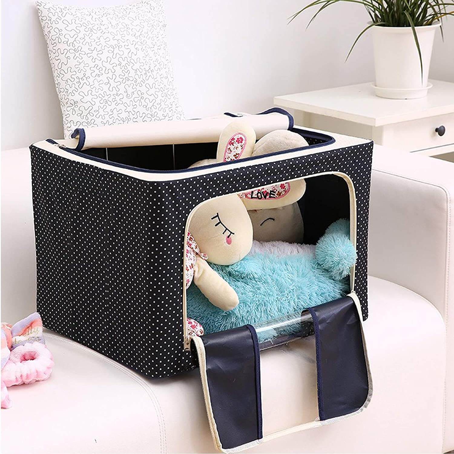 Deze slimme opbergbox combineert functionaliteit en stijl om jouw leven eenvoudiger te maken. Het is de beste oplossing om uw buiten het seizoen of volumineuze artikelen en kleding op te bergen, zodat u de ruimte in uw kast kunt maximaliseren.