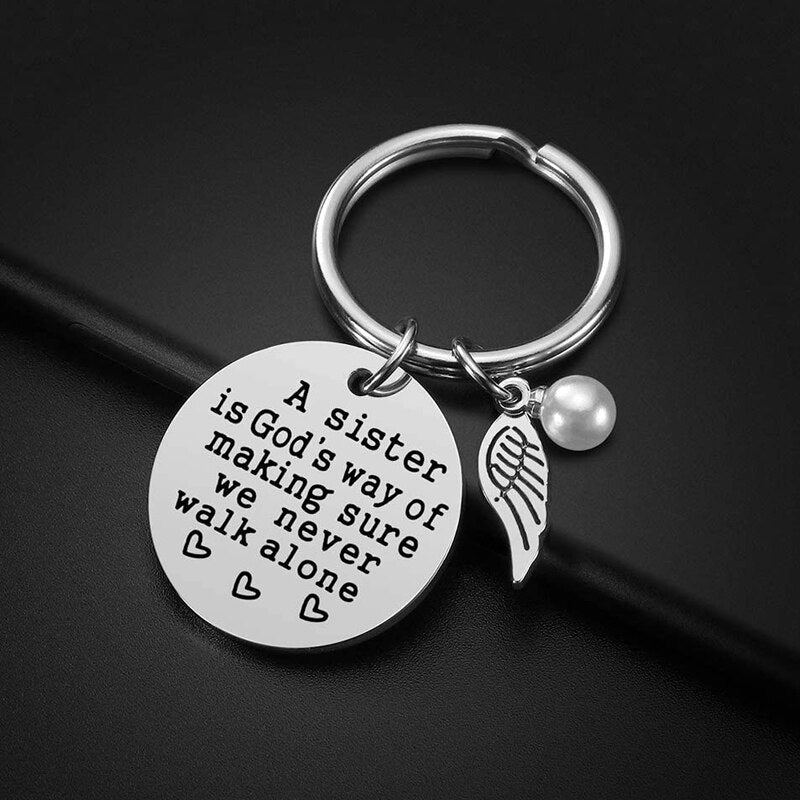 ★ Mooie boodschap wat is gegrafeerd op hoogwaardig roestvrij staal, hierdoor heeft de sleutelhanger met mooie parel en vleugel een ongelooflijke glans.